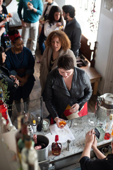 Upon arrival, I had already begun to feel the stirring of something beautiful being created. There was a notable intimacy to the space. Residual sun spilled through the skylight, past the hand-cut greenery, across the edible flowers lining the center of the table, finally reflecting light onto the flecks of glitter in the deep plum-colored tablecloth. There was pea soup topped with fried onion skins, carrot and charred spring onion tofu with pickled mushrooms and micro greens, emu tartare with shaved cured egg yolk, blood sausage stuffed chicken wings with a savory carrot cake and pistachio basil cream cheese. Now this is Voodoo Spring Time.